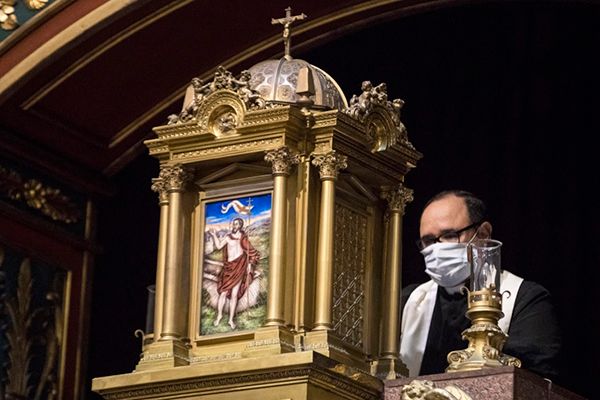 En ocasiones asisten a la misa otros sacerdotes que hacen vida en la parroquia, ellos llevan mascarilla, el templo está cerrado para los feligreses, aunque se mantienen las intenciones de las misas incluyendo los novenarios.