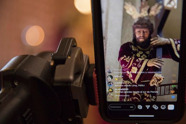 El padre Ortega verifica que todo esté en orden y responde los mensajes que llegan por Instagram. La cuenta de Instagram de la parroquia pasó de tener cerca de 1.600 seguidores a alcanzar 5.200 en menos de cuatro semanas. Solo dos laicos hemos asistido “religiosamente” a la misa durante estas últimas cuatro semanas. Alfonso, que se encarga de poner la música y preparar el altar y yo que por mi experiencia audiovisual los ayudo con la transmisión por IG.