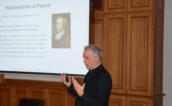 L'orateur a choisi d'évoquer deux grandes conceptions de ce rapport entre la science et la foi — celles des saint Thomas d'Aquin et de Pascal — et de les mettre en parallèle avec l'itinéraire et la pensée de Georges Lemaître. Ainsi, la distinction thomiste de la causalité efficiente de la causalité ontologique est un bagage décisif assimilé par Georges Lemaître. En effet, ce dernier a toujours évité toute confusion entre une explication physique du commencement naturel de l'univers et le concept de création, faisant appel à une cause surnaturelle.