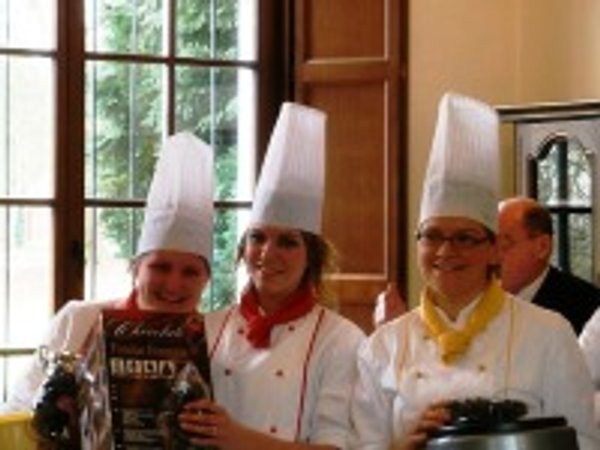 Plusieurs équipes sont venues réaliser leur montage au Centres de rencontres de Dongelberg au cours d’un stage de quatre jours qui a précédé le concours. Parmi elles, les candidates du Chêneau venaient de faire leurs premières armes en chocolaterie. Les participantes ont apprécié l’ambiance accueillante, l’esprit de travail et d’entraide. Le chocolat est une matière très délicate qui requiert un soin minutieux et beaucoup de patience, il faut commencer et recommencer sans cesse, mais le résultat en vaut la peine. Egalement au programme du stage, des moments de formation chrétienne et des échanges entre les groupes des différents pays ; le langage des sketches est universel, comme on l’a vu le jour de l’anniversaire d’Ineke, professeur de l’école Europrof à Tilburg, qui a gagné le premier prix dans la catégorie « Professionnel ».