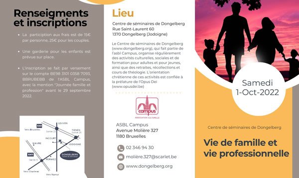 Les questions-réponses et témoignages qui ont suivi ont évoqué le danger de se comparer à autrui quand les circonstances de l’autre sont peut-être différentes ; ils ont aussi abordé les situations de crise presque permanentes dans certaines professions, l’interruption de carrière ou la décision de se consacrer entièrement au foyer après des années de vie professionnelle intense. Ici aussi un appel au réalisme a été fait car chaque solution a ses avantages et ses inconvénients et il n’est pas possible d’éviter toutes les difficultés ou possibles frustrations.