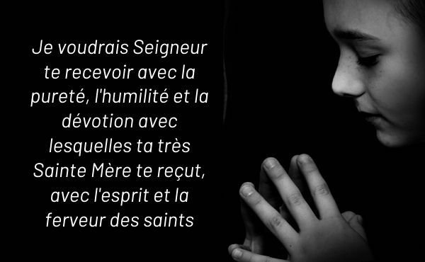 Je voudrais, Seigneur, te recevoir avec la pureté, l’humilité et la dévotion avec lesquelles ta très Sainte Mère te reçut, avec l’esprit et la ferveur des saints.