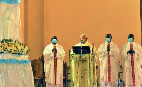 Kinshasa. Le 22 juin, c´est Mgr. Jean Crispin Kimbeni qui a concélébré à la Cathédrale Notre Dame avec les deux autres évêques auxiliaires de Kinshasa, Mgr. Vincent Tsomba, et Mgr. Carlos Ndaka, avec Mgr. Xavier Valdés, vicaire de l´Opus Dei en RDC, et d'autres prêtres.