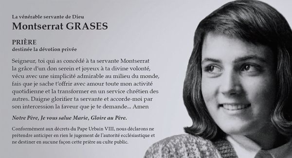 Seigneur, toi qui as concédé à ta servante Montserrat la grâce d'un don serein et joyeux à ta divine volonté, vécu avec une simplicité admirable au milieu du monde, fais que je sache t'offrir avec amour toute mon activité quotidienne et la transformer en un service chrétien des autres.