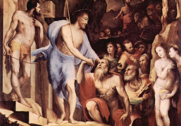 Depuis Adam et Ève, des milliers de pécheurs repentis désirent voir le Messie. Le Nouvel Adam, après avoir effacé la ruine du premier parent, le rejoint dans les ombres pour lui faire partager la gloire. «Lève-toi d'entre les morts et le Christ resplendira sur toi» (Éphésiens 5,14)