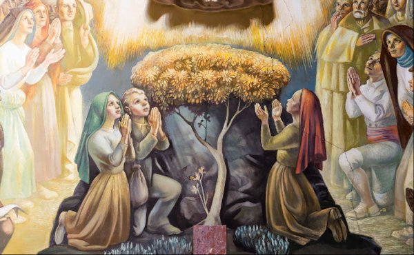 1917 fut une année spéciale. L’Europe était en guerre. Dimanche 13 mai, dans un endroit reculé de la Serra do Aire, au centre du Portugal, trois enfants qui venaient d’assister à la Sainte Messe, conduisaient leur troupeau vers les pâturages de Cova da Iria, sur la partie élevée de la propriété, au sommet de la colline. Là, sans quitter les brebis des yeux, ils se sont mis à jouer aux maçons, un de leurs passe-temps favoris. Il s’agissait alors de dresser une palissade protectrice autour d’un très bel arbrisseau de bruyère blanche avec laquelle les parents faisaient des balais. C’était midi. Soudain, devant eux, sur petit chêne, au centre d’une grande auréole de lumière qui les enveloppa, ils virent une très belle Dame, plus resplendissante que le soleil.