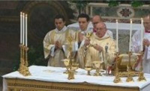 Ensuite l'Evangile était le récit par Matthieu de la confession de Pierre: "Et vous autres, que dites-vous que je suis?", lança Jésus à ses compagnons. Ce à quoi Pierre répondit: "Toi tu es le Christ, le fils du Dieu vivant". Formule à laquelle le Seigneur répliqua par ces mots: "Et moi je te dis que tu es Pierre et que sur cette pierre je bâtirai mon Eglise, et que les portes de l'Enfer n'auront pas prise sur elle." C'est donc sur ces trois textes, étroitement liés entre eux, que le Saint-Père a appuyé son homélie, brève et donnée sans texte écrit: