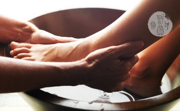 Le geste de Jésus lors de la dernière Cène s'inspire d'un détail de l'hospitalité commun à de nombreuses cultures orientales, de l'utilisation de sandales sur les routes poussiéreuses de ces contrées. Dans l'Ancien Testament, Abraham insiste pour laver les pieds des trois voyageurs qui passent devant sa maison (Gn 18,4) et parmi les premiers chrétiens, ceux qui "pratiquaient l'hospitalité et lavaient les pieds des saints" (1 Tm 5,10) étaient estimés pour leurs bonnes actions.