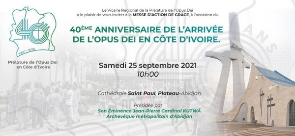 Les célébrations des 40 ans de l'Opus Dei en Côte d'Ivoire touchent à leur fin. Elles ont été assez gênées par la Covid19, qui a semé le deuil et la souffrance dans tout le monde. Notre cher pays n'a pas été épargné, même si, Dieu merci, les cas ont été beaucoup moins nombreux que sur d'autres continents. Mais ce n'est pas fini. Comme d'habitude, la joie n'est jamais exemptée de souffrance.