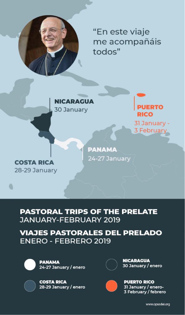 Le prélat de l'Opus Dei est arrivé à 16h05 à Porto Rico, à l'aéroport international Luis Muñoz Marín de San Juan. Il a entamé sa visite pastorale qui se terminera le dimanche 3 février.
