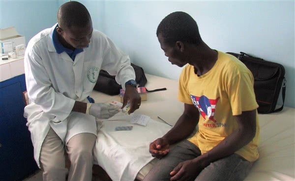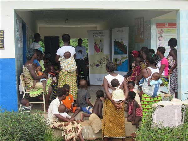 Au dispensaire du village, le décor était tout autre. Le bâtiment avait été inauguré peu de mois auparavant. Chaque jour, des dizaines de patients s’y rendaient pour bénéficier gratuitement de consultations, de soins et de médicaments. La prise en charge des patients était assurée par Franck-Hermann, qui vient de finir ses études de médecine, un autre Pacôme, docteur en pharmacie, et Olivier et Boris, étudiants en médecine ; Yannick, étudiant en Droit, faisait le travail des aides-soignants.