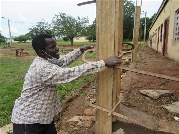 La réhabilitation de l’école primaire de Gangoro représentait un défi majeur, c’est pourquoi la plus grande partie des effectifs y était affectée. Ladite école est composée de trois bâtiments dont le plus ancien date de 1976. Elle comprend six salles de classe, un bureau pour le Directeur et une cantine. Sur ce chantier, il y avait beaucoup à faire. Les toitures étaient fissurées par endroits, les bancs étaient en si mauvais état qu’on se mettait à tanguer de gauche à droite rien qu’en les regardant, la peinture était très dégradée. La toiture de la terrasse du plus ancien bâtiment avait été complètement emportée lors d’un orage. Il fallait donc la refaire ainsi que tout le plancher de cette partie. Les constats ayant été faits, nous avons tout de même gardé le sourire et retroussé les manches. En plus des heures de travail, il y avait d’autres efforts et quelques contrariétés qui nous aidaient à avoir plus présents à l’esprit les bénéficiaires. Et des choses très sympathiques qui nous faisaient sourire : par exemple, on entendait par moments les écoliers qui participaient à des cours de renforcement non loin. Ils disaient à haute voix « bonjour Monsieur, je m’assois et je me tais ». Pour nous c’était nouveau et assez surprenant. En pensant à eux, il valait la peine de s’appliquer à bien faire les tâches qui nous étaient confiées.