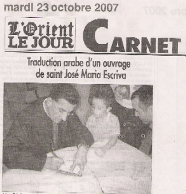 L'archevêque maronite de Jbeil, Mgr Béchara Rahi, a présenté a la presse, au cours d'une cérémonie organisée au salon de la paroisse Saint-Marc, a Jbeil, la première édition arabe du livre Saint Rosaire de saint José Maria Escriva, fondateur de l'Opus Dei.