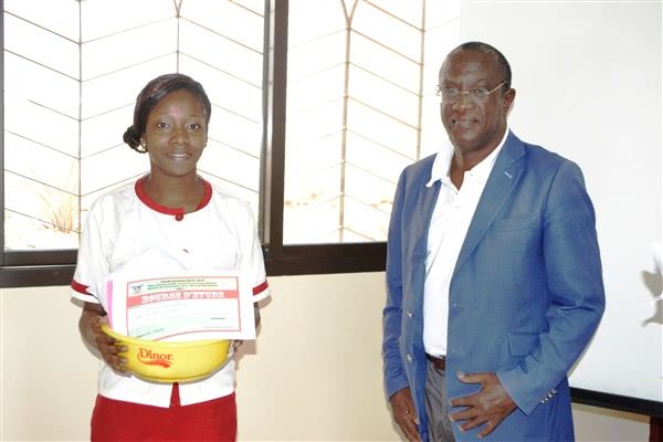 C’est vraiment une joie pour moi de recevoir ce prix. J’aimerais dire merci à la marraine et à Monsieur le Ministre du Tourisme pour ses présents et ces gestes à notre égard. Ce merci va également à l’Ecole de Formation Professionnelle Yarani, qui est à la base de notre formation, qui nous apprend beaucoup de choses et qui nous donne vraiment les vertus pour être des jeunes filles meilleures de demain. J’aimerais dire à mes amies que seul le travail paie. Il y a beaucoup de difficultés dans la vie mais on peut les braver grâce à la formation reçue et au soutien qu’on nous prodigue.