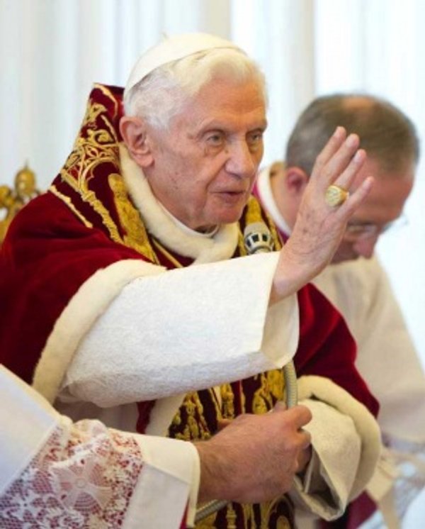 Je vous ai convoqués à ce Consistoire non seulement pour les trois canonisations, mais également pour vous communiquer une décision de grande importance pour la vie de l’Eglise. Après avoir examiné ma conscience devant Dieu, à diverses reprises, je suis parvenu à la certitude que mes forces, en raison de l’avancement de mon âge, ne sont plus aptes à exercer adéquatement le ministère pétrinien. Je suis bien conscient que ce ministère, de par son essence spirituelle, doit être accompli non seulement par les œuvres et par la parole, mais aussi, et pas moins, par la souffrance et par la prière. Cependant, dans le monde d’aujourd’hui, sujet à de rapides changements et agité par des questions de grande importance pour la vie de la foi, pour gouverner la barque de saint Pierre et annoncer l’Evangile, la vigueur du corps et de l’esprit est aussi nécessaire, vigueur qui, ces derniers mois, s’est amoindrie en moi d’une telle manière que je dois reconnaître mon incapacité à bien administrer le ministère qui m’a été confié. C’est pourquoi, bien conscient de la gravité de cet acte, en pleine liberté, je déclare renoncer au ministère d’Evêque de Rome, Successeur de saint Pierre, qui m’a été confié par les mains des cardinaux le 19 avril 2005, de telle sorte que, à partir du 28 février 2013 à vingt heures, le Siège de Rome, le Siège de saint Pierre, sera vacant et le conclave pour l’élection du nouveau Souverain Pontife devra être convoqué par ceux à qui il appartient de le faire.