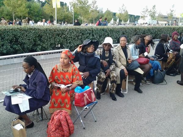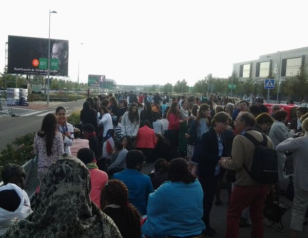 Comme pour la Cérémonie de Béatification, l'ouverture des accès à Valdebebas s'est faite à 8 h. Mais ce matin, nous ne sommes plus parmi les premiers arrivants et il y a un peu moins de monde qu'hier. Il est clair que certaines personnes,pour des raisons concrètes, ont pris l'option de ne participer qu'à l'Evénement-phare. Quant à nous, nous continuons à répondre présents.