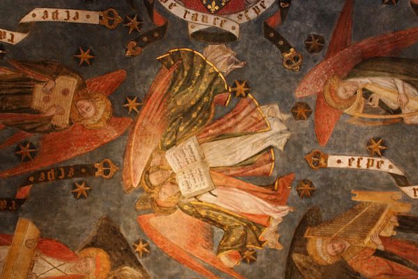 Malgré sa sobriété, la Sainte Ecriture n’omet pas la mention au chant dans le ciel. Et c’est logique, car « Dieu n’est pas solitude mais amour joyeux et glorieux, rayonnant et lumineux »[18]. Nous pouvons imaginer la musique qui accompagnait l’arrivée de la Vierge au ciel, devant la Sainte Trinité : une armée d’anges attend sa Reine qui arrive corps et âme. La musique est solennelle, elle déborde d’affection et de joie dans un subtil équilibre de beauté. La Vierge paraît, resplendissante, et le Fils, qui a introduit la nature humaine au sein de la Trinité, accueille sa Mère.