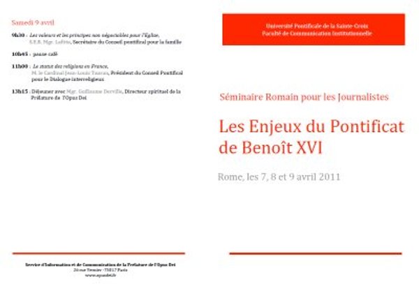 Brochure Séminaire pour Journalistes : Les enjeux du pontificat de Benoît XVI