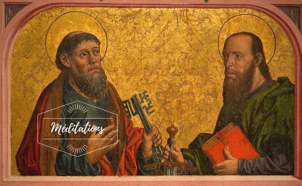 Nous voyons aujourd’hui ce que Dieu peut faire de ceux qui s’ouvrent généreusement à son action. « Courage ! Tu en es capable. — Ne vois-tu pas ce que la grâce de Dieu a fait de ce Pierre somnolent, renégat et lâche…, de ce Paul persécuteur, haineux et obstiné » [2]. « La tradition chrétienne considère saint Pierre et saint Paul comme inséparables : en effet, ensemble, ils représentent tout l’Évangile du Christ » [3]. Les deux sont un des fondements de l’Église, symboles de son unité et colonnes de la foi. Pour cette raison, l’Église célèbre le même jour la Dédicace des basiliques romaines de Saint-Pierre et de Saint-Paul, édifiées sur leur tombeau.