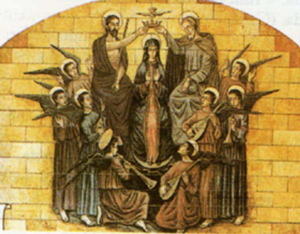 Le Père, le Fils et le Saint-Esprit la couronnent en tant qu'impératrice de l'univers.