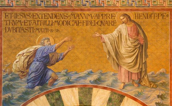 photo : 'Saint Pierre marchant sur les eaux vers Jésus', église Herz Jesus (Berlin - Allemagne), fresque de Friedrich Stummel et Karl Wenzel (fin XIX°-début XX°)