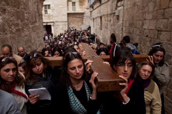 Nous connaissons aussi de nombreux détails des cérémonies liturgiques à Jérusalem à la même époque grâce à la pèlerine Égérie qui visita Jérusalem à la fin du IV siècle. Beaucoup s’appuyaient sur la lecture des récits évangéliques concernant chaque lieu, sur la prière d’un psaume déterminé et sur le chant d’hymnes. Lorsqu’elle décrit les rites sacrés du Jeudi et du Vendredi Saint, elle dit que les fidèles allaient, en procession, du Mont des Oliviers au Calvaire : « On va vers la ville à pied, en chantant des hymnes et l’on atteint la porte à l’heure où l’on peut déjà distinguer les personnes, les unes des autres. Puis, à l’intérieur de la ville, tous, sans exception, grands et petits, riches et pauvres, sont là. Personne ne manque à l’appel, surtout en ce jour-là, de la veille à l’aurore. On entoure ainsi l’évêque de Gethsémani à la porte et de là, on traverse toute la ville, jusqu’à la Croix» (Itinerarium Egeriae, XXXVI, 3 (CCL 175, 80)).