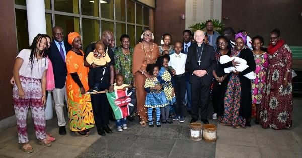 Mgr Ocariz a été accueilli à l'aéroport de Nairobi par les familles Njais, Sibondos et Beauttahs, avec le vicaire du prélat en Afrique de l'Est, Silvano Ochuodho.