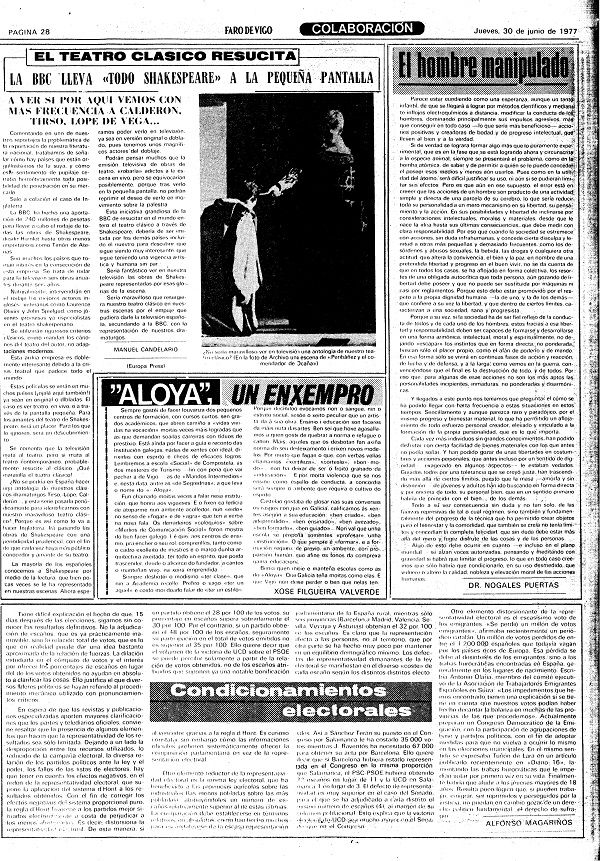 Fun chamado moitas veces a falar nesa institución, que honra aos vigueses. E o fixen ca ledicia de atoparme nun ambente acolledor, nun «eido» no senso de «lugar» e de «agra» que ten a verba na nosa fala. Os derradeiros «coloquios» sobre «Medios de Comunicación Social» foron mostra do bon facer galego. I é que aos centros de ensino, pra encher o seu rol, comprenlles, tanto como o cadro escolleito de mestres e o marco dunha arquitectura axeitada, ter todo un esprito que poida transcender, dende o alicerce do fundador, a cantos o manteñan vivo na xeira emprendida.