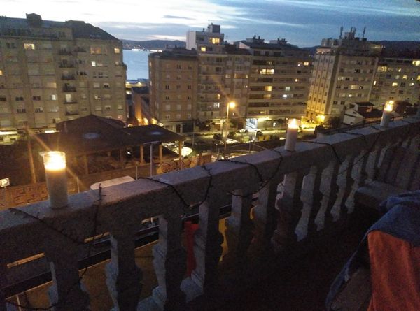Pouco a pouco os medios técnicos foron mellorando e a relación de balcón a balcón foi medrando. Os primeiros días xa anoitecía cando saían a aplaudir a todas as persoas que están en primeira liña da loita contra o coronavirus. Entre lusco e fusco, coas luces das linternas dos teléfonos ou as da casa, os vecinos cantaban e bailaban cancións coma Bella Ciao. Pero veu o cambio de hora, xusto a noite antes da celebración da Reconquista, que é todo un acontecemento en Vigo. Para ese día, o 29 de marzo, "xa tiñamos uns altofalantes grandes e mesa de mezclas", lembra Jarque. E celebraron a festa "como Deus manda", aínda que fora con cada familia na súa casa.
