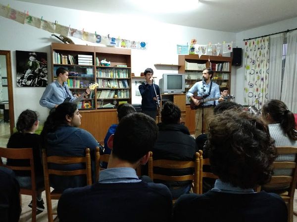 Entre as actividades deste club, que acaba de cumprir 50 anos de funcionamento, están os talleres para aprender a tocar a guitarra. Pero fai algúns anos «preguntámonos que máis poderiamos facer desde esta asociación xuvenil, ademais das visitas habituais ás persoas necesitadas que sempre fixemos, e puxemos en marcha esta iniciativa solidaria en torno á música», explica Pérez. Así naceu unha formación musical composta de nenos entre 14 e 17 anos que se chamaba Hospiband.