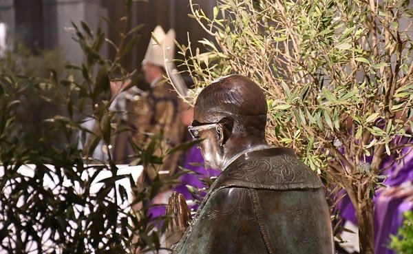 Tras o acto, monja encontro con curas, o párroco preguntou ao bispo se podrán trasladarlle ao Prelado da Obra, don Fernando Ocáriz, alguna idea de fondo con motivo da bendición da escultura;Don Francisco José responde: "Dille que esta imaxe estará situada na Capela do Santísimo diante do Sagrario, e con isto san Josemaría ensínanos, unha vez máis, como fixo ao longo da súa vida, que o criado semper sabe onde está o centro e dinos que hai que mirar ao Señor”.