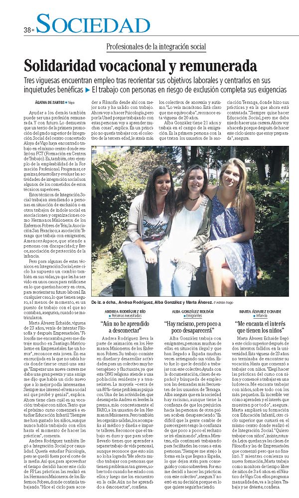 Recollemos a reportaxe feita a tres alumnas dos Ciclos Formativos de Aloya [Vigo], recollida no Faro de Vigo (7-VII-2015)