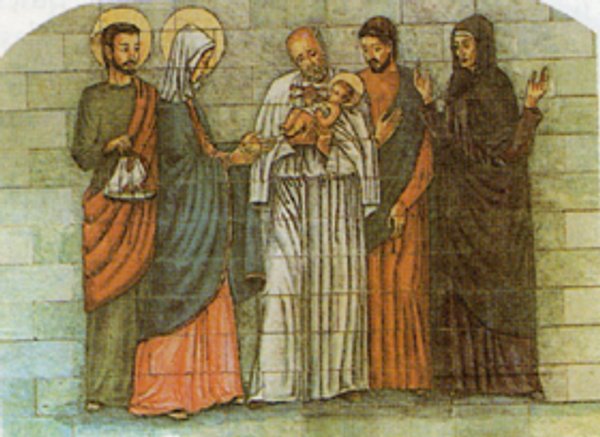 Kad se zatim po Mojsijevu Zakonu navršiše dani njihova čišćenja, poniješe ga u Jeruzalem da ga prikažu Gospodinu - kao što piše u Zakonu Gospodnjem: Svako muško prvorođenče neka se posveti Gospodinu! - i da prinesu žrtvu kako je rečeno u Zakonu Gospodnjem: dvije grlice ili dva golubića. (Lk 2:22-24)