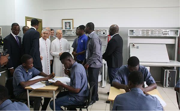 Monsinjoru Ocárizu organiziran je obilazak škole kroz mehaničku radionicu i laboratorij za automatizaciju gdje se susreo sa studentima koji su radili na zadatcima. Također je posjetio kapelicu gdje je izrekao kratku molitvu.