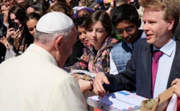Nakon toga je skupina sveučilišnih studenata s UNIV-a Papi Franji predala stotine pisama koje su pisali stariji ljudi i siročad iz cijeloga svijeta. Studentima su predane krunice i križevi što ih je Papa blagoslovio kako bi ih dali autorima pisama kada se vrate u svoje zemlje.