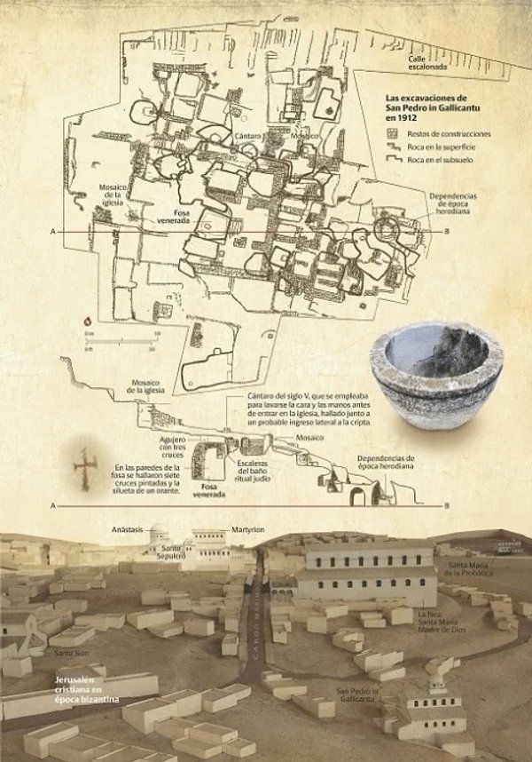 Izvan crkve mogu se vidjeti i druga arheološka otkrića koja posebno uključuju ulicu koja vodi uzbrdo. Ona je povezivala bogati gornji i siromašni donji dio grada koji se pružao uz obalu jezera oko mjesta gdje je voda bila dostupna: izvora i kupališta u Siloamu. Ulica je postojala i u Gospodinovo vrijeme, iako joj tada stepenice vjerojatno nisu bile kamene. Vjerojatno je njome hodao mnogo puta gore i dolje, a osobito u noći Velikog Četvrtka, prvo s apostolima na putu od Gornje sobe do Gecemanija, i kasnije dok su ga vukli oni koji ga uhitiše u Maslinskom vrtu i koji su ga vodili do kuće Velikoga svećenika.