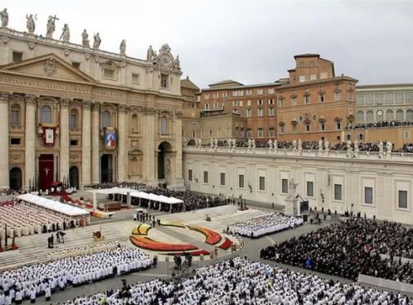 Oko 9:30 svoje su mjesto zauzeli biskupi, svećenici i drugi dužnosnici. Osobito je dirljiv trenutak bio pojavljivanje Pape Benedikta XVI: dočekao ga je dugi pljesak koji je odzvanjao čitavim trgom u znak ljubavi i zahvalnosti.