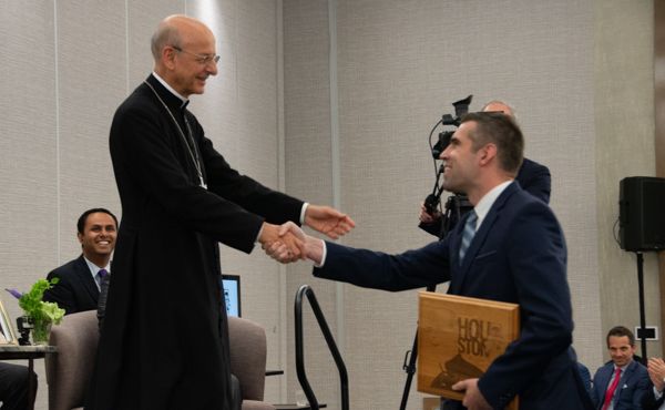 "Zdravo, oče, u Teksasu ste! Yee-haw!” Ovo je bio živahni pozdrav koji je Prelat primio od 200 mladih žena koje su ga čekale drugi dan njegovog posjeta Houstonu. Nakon što su ga srdačno pozdravile, ažurirale su njegovu "putovnicu", poklon koji je dobio u New Yorku, na način da su dodali poštanske markice iz raznih gradova Teksasa iz kojih su došle da ga vide.