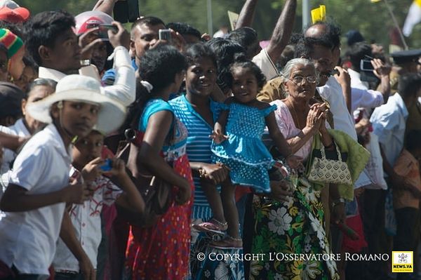 Saya telah datang ke Sri Lanka mengikuti jejak para pendahulu saya, Paus Paulus VI dan Paus Yohanes Paulus II, untuk menunjukkan cinta dan perhatian dari Gereja Katolik bagi Sri Lanka. Ini adalah anugerah khusus bagi saya untuk dapat mengunjungi komunitas Katolik di sini, untuk meneguhkan mereka dalam iman Kristiani mereka, untuk berdoa dengan mereka, serta berbagi sukacita dan penderitaan mereka. Adalah merupakan anugerah yang sama besarnya pula boleh hadir bersama Anda sekalian, para pria dan wanita dari tradisi-tradisi keagamaan yang besar, yang bersama kami saling berbagi kerinduan akan kebijaksanaan, kebenaran dan kekudusan.