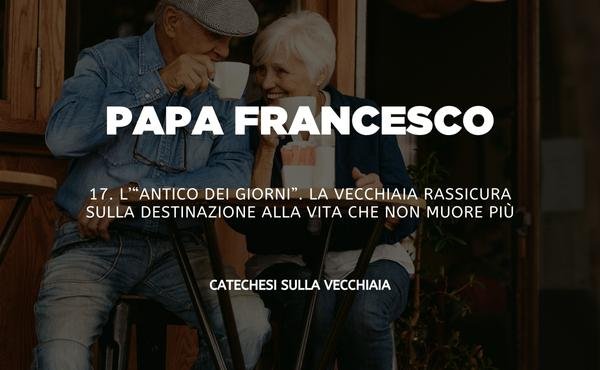 La testimonianza degli anziani è credibile per i bambini: i giovani e gli adulti non sono in grado di renderla così autentica, così tenera, così struggente, come possono fare gli anziani, i nonni. Quando l’anziano benedice la vita che gli viene incontro, deponendo ogni risentimento per la vita che se ne va, è irresistibile. Non è amareggiato perché passa il tempo e lui sta per andarsene: no. È con quella gioia del buon vino, del vino che si è fatto buono con gli anni. La testimonianza degli anziani unisce le età della vita e le stesse dimensioni del tempo: passato, presente e futuro, perché loro non sono solo la memoria, sono il presente e anche la promessa. È doloroso – e dannoso – vedere che si concepiscono le età della vita come mondi separati, in competizione fra loro, che cercano di vivere ciascuno a spese dell’altro: questo non va. L’umanità è antica, molto antica, se guardiamo al tempo dell’orologio. Ma il Figlio di Dio, che è nato da donna, è il Primo e l’Ultimo di ogni tempo. Vuol dire che nessuno cade fuori dalla sua eterna generazione, fuori dalla sua splendida forza, fuori dalla sua amorevole prossimità.