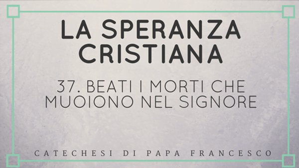 E allora Gesù prega il Padre, sorgente della vita, e ordina a Lazzaro di uscire dal sepolcro. E così avviene. La speranza cristiana attinge da questo atteggiamento che Gesù assume contro la morte umana: se essa è presente nella creazione, essa è però uno sfregio che deturpa il disegno di amore di Dio, e il Salvatore vuole guarircene.