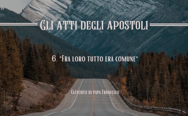 Ed è la modalità propria cristiana, a tal punto che i pagani guardavano i cristiani e dicevano: “Guardate come si amano!”. L’amore era la modalità. Ma non amore di parola, non amore finto: amore delle opere, dell’aiutarsi l’un l’altro, l’amore concreto, la concretezza dell’amore. Il vincolo con Cristo instaura un vincolo tra fratelli che confluisce e si esprime anche nella comunione dei beni materiali.