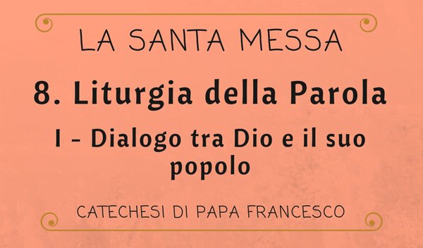 Continuiamo oggi le catechesi sulla Santa Messa. Dopo esserci soffermati sui riti d’introduzione, consideriamo ora la Liturgia della Parola, che è una parte costitutiva perché ci raduniamo proprio per ascoltare quello che Dio ha fatto e intende ancora fare per noi. È un’esperienza che avviene “in diretta” e non per sentito dire, perché «quando nella Chiesa si legge la sacra Scrittura, Dio stesso parla al suo popolo e Cristo, presente nella parola, annunzia il Vangelo» (Ordinamento Generale del Messale Romano, 29; cfr Cost. Sacrosanctum Concilium, 7; 33). E quante volte, mentre viene letta la Parola di Dio, si commenta: “Guarda quello…, guarda quella…, guarda il cappello che ha portato quella: è ridicolo…”. E si cominciano a fare dei commenti. Non è vero? Si devono fare dei commenti mentre si legge la Parola di Dio? [rispondono: “No!”]. No, perché se tu fai delle chiacchiere con la gente non ascolti la Parola di Dio. Quando si legge la Parola di Dio nella Bibbia – la prima Lettura, la seconda, il Salmo responsoriale e il Vangelo – dobbiamo ascoltare, aprire il cuore, perché è Dio stesso che ci parla e non pensare ad altre cose o parlare di altre cose. Capito?... Vi spiegherò che cosa succede in questa Liturgia della Parola.