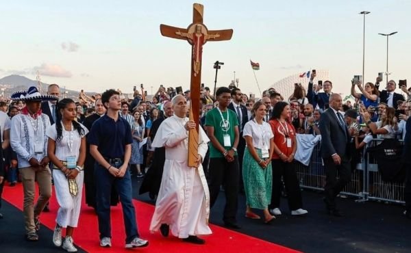 A riguardo, venticinque anni fa, proprio qui dove ci troviamo, San Giovanni Paolo II disse: «è Gesù che cercate quando sognate la felicità; è Lui che vi aspetta quando niente vi soddisfa di quello che trovate; è Lui la bellezza che tanto vi attrae; è Lui che vi provoca con quella sete di radicalità che non vi permette di adattarvi al compromesso; è Lui che vi spinge a deporre le maschere che rendono falsa la vita; è Lui che vi legge nel cuore le decisioni più vere che altri vorrebbero soffocare» (Veglia di preghiera nella XV Giornata mondiale della Gioventù, 19 agosto 2000). La paura lascia allora spazio alla speranza, perché siamo certi che Dio porta a compimento ciò che inizia.