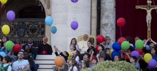 Questa piazza “vi abbraccia: siamo un solo popolo, con un’anima sola, convocati dal Signore che ci ama e ci sostiene”. Papa Francesco rivolge le sue parole piene di calore ad una Piazza San Pietro colorata da una distesa di palloncini, festante, gremita da migliaia di famiglie: neonati in carrozzina, bambini di ogni età, genitori, nonni, ci sono anche bisnonni, riuniti per ascoltare le parole del Papa e per la Professione di Fede. Papa Francesco arriva sul Sagrato mano nella mano con dieci bambini e subito scherza con loro affettuosamente, chiedendogli se sanno farsi il segno della Croce. “Famiglia, vivi la gioia della fede” è il tema del Pellegrinaggio e il Papa si sofferma proprio sul modo in cui sperimentare questa gioia nella famiglia, oggi. Papa Francesco conosce le difficoltà che le famiglie vivono. “La vita spesso è faticosa”, “lavorare è fatica”, “ma – ricorda il Papa – quello che pesa di più nella vita è la mancanza di amore”; “pesano certi silenzi, a volte anche in famiglia, fra marito e moglie, fra genitori e figli”. Il Papa pensa anche agli anziani soli e alle famiglie che non sono aiutate a sostenere chi in casa ha bisogno di cure speciali. A tutte le famiglie Papa Francesco ricorda le parole di Gesù: “Venite a me voi tutti che siete affaticati e oppressi”. “Il Signore conosce le nostre fatiche" e i pesi della nostra vita, dice, ma anche il nostro profondo desiderio di trovare la gioia del ristoro: