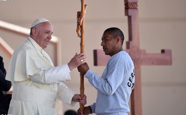 Sappiamo che non si può tornare indietro, sappiamo che quel che è fatto è fatto; perciò ho voluto celebrare con voi il Giubileo della misericordia, perché sia chiaro che questo non significa che non ci sia una possibilità di scrivere una nuova storia, una nuova storia d’ora in avanti – “per quale scopo” –. Voi soffrite il dolore della caduta - magari tutti noi soffrissimo del dolore della cadute nascoste e occulte! -; sentite il pentimento per i vostri atti e so che in tanti casi, in mezzo a grandi limitazioni, cercate di ricostruire questa vita a partire dalla solitudine. Avete conosciuto la forza del dolore e del peccato; non dimenticatevi che avete a disposizione anche la forza della risurrezione, la forza della misericordia divina che fa nuove tutte le cose. Ora vi può toccare la parte più dura, più difficile, però, perché possa essere quella che generi un più grande frutto, impegnatevi fin da qui dentro a capovolgere le situazioni che generano ulteriore esclusione. Parlate con i vostri cari, raccontate loro la vostra esperienza, aiutate a frenare il giro vizioso della violenza e dell’esclusione. Chi ha sofferto profondamente il dolore e, potremmo dire, “ha sperimentato l’inferno” può diventare un profeta nella società. Lavorate perché questa società che usa e getta la gente non continui a mietere vittime.