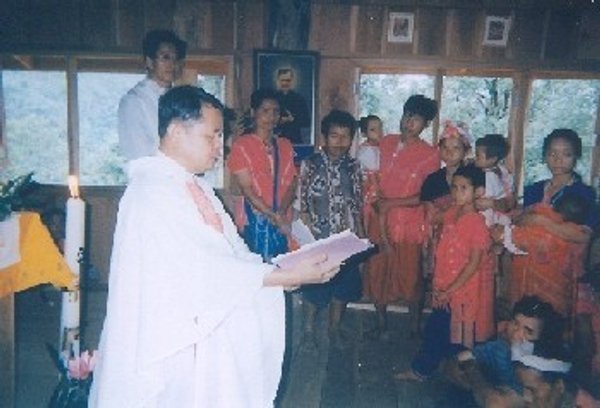 Ho benedetto la cappella sabato mattina. Quella sera ci siamo riuniti in una casa per festeggiare, cantare e fare una lezione di catechismo. Pioveva a catinelle, e siamo uscite per tre ore di camminata. Una festa tailandese, molto partecipata, con l’uccisione di tre maialini, tutto molto ben festeggiato.