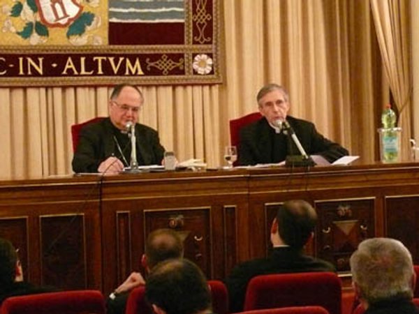 Titolo di quest’anno, «Identità e sviluppi della fraternità sacramentale dei presbiteri», tema quanto mai sentito in un momento che vede la riorganizzazione di molte diocesi italiane in forme che richiedono dai sacerdoti una maggiore collaborazione reciproca e convivialità. In sostanza, ricordava Lanfranchi, questa non deriverà da istanze «logistiche» ma dalla riscoperta di una dimensione fondamentale del sacramento ricevuto: la comunione tra i presbiteri è una parte della comunione intrinseca alla Chiesa, la quale è mistero di comunione e missione. Essere presbiteri oggi significa passare da una vocazione percepita come «mia» (e la vocazione è sempre personale) a una chiamata (o missione) vissuta come «nostra». Passare, aggiungeva, dall’asse parroco-parrocchia all’asse presbiterio-parrocchia. Una tale prospettiva richiama necessariamente una conversione spirituale, culturale e pastorale, e una formazione adatta.