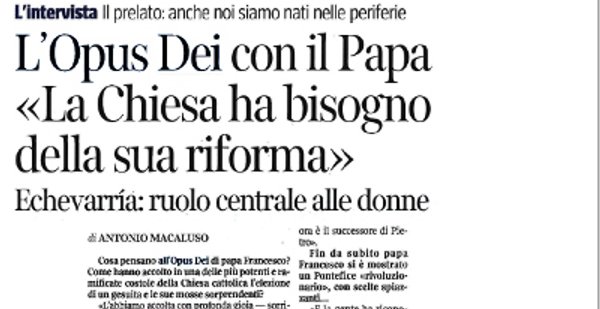 «In realtà potremmo dire che l’Opus Dei è nata proprio nelle periferie, negli anni 30, a Madrid. E da allora tante persone continuano a esercitare quel tipo di impegno in tutto il mondo, assistendo poveri, malati, uomini, donne e bambini in difficoltà da New Delhi a Manila, a Lima, a Manchester, a Kinshasa. E poi mi permetta di chiarire che l’Opus Dei non si rivolge solo ai ricchi: molti fedeli della prelatura, in diverse parti del mondo, non riescono ad arrivare a fine mese e affrontano questa difficoltà con eroismo e con fede, senza fare rumore».