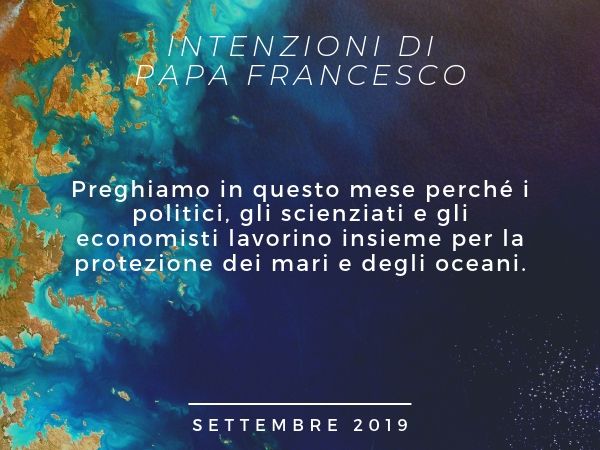 Gli oceani contengono la maggior parte dell’acqua del pianeta e anche la maggior varietà di esseri viventi, molti dei quali oggi minacciati da diverse cause. La Creazione è un progetto dell'amore di Dio all'umanità. La nostra solidarietà con la “casa comune” nasce dalla nostra fede. Preghiamo in questo mese perché i politici, gli scienziati e gli economisti lavorino insieme per la protezione dei mari e degli oceani.